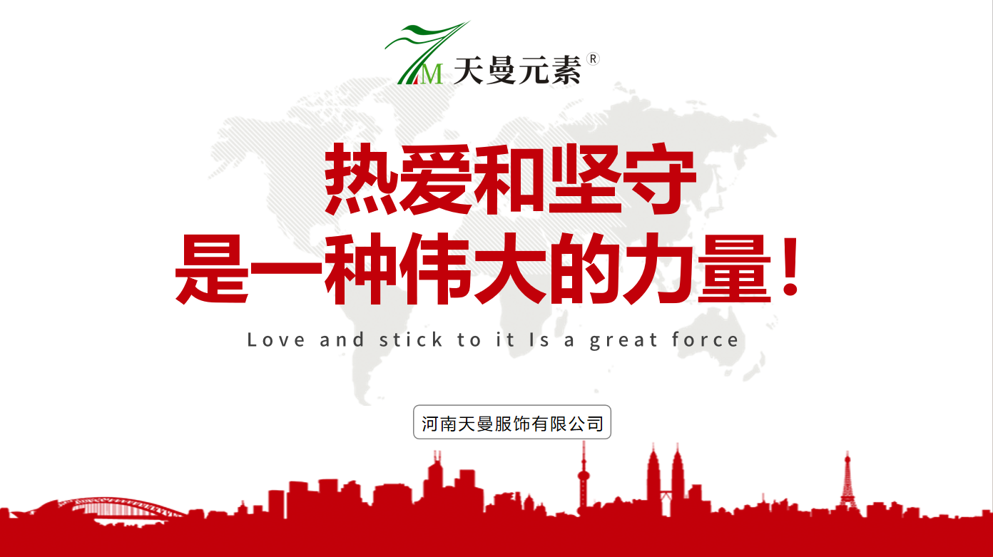 創業初心、打造學習型企業、擁抱互聯網、品牌文化定位、感恩時代、未來之路,一段段歲月的腳印,一幅幅過往的畫面,激勵著天曼服飾全體員工堅信:“熱愛和堅守是一種偉大的力量”!