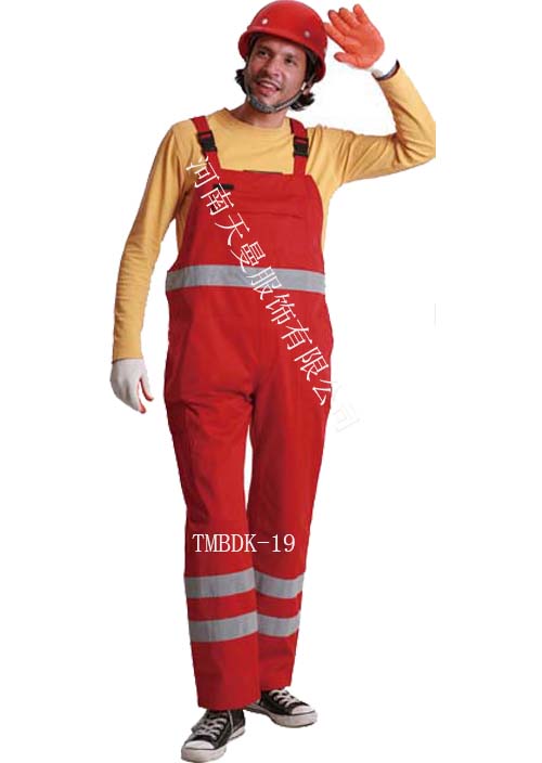 - 產(chǎn)品簡(jiǎn)介:背帶褲,反光條背帶褲,產(chǎn)品詳細(xì)描述 : 面料:T/C, 16*12,108*56,260-270GSM;5CM反光條環(huán)繞衣前,衣后和雙褲腿一周,一個(gè)帶蓋胸兜,塑脂拉鏈,兩個(gè)斜插兜,背帶松緊帶并有卡扣可以調(diào)節(jié)背帶長(zhǎng)度,腰部可調(diào)節(jié)松緊。