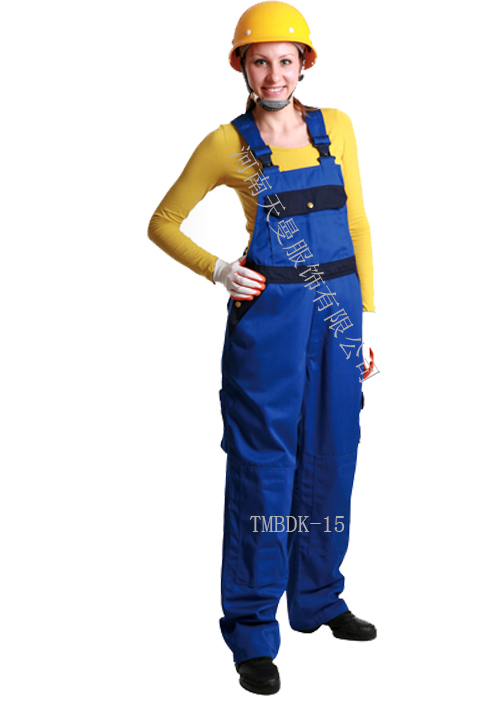 Fabrics: T/C, 16*12, 108*56,260-270 gsm;waist adjustable;one breast pocket with flap, two side slash pockets,zippered fly, back patch pocket with flap,elasticated bib bands with buckle adjustable.