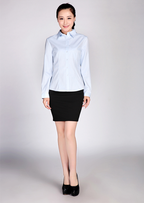 • 產品簡介:藍色V領長袖女士襯衣工作服